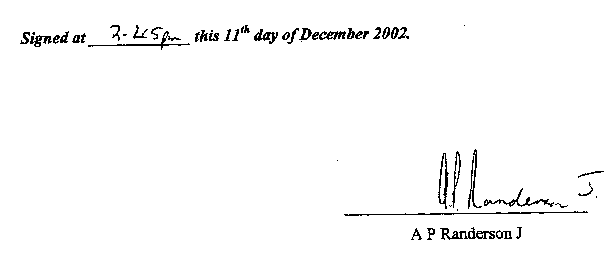 [68] The question of costs is reserved. If counsel are unable to agree, a memorandum shall be filed no later than 3 February 2003.