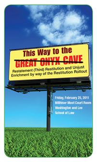 For many lawyers, judges, law students, and professors the road to restitution led through the Great Onyx Cave by way of one of the first restitution cases they read, Lee’s and Edwards’s litigation about Edwards’s trespass on Lee’s part of the Great Onyx Cave which was 360 feet below the surface of Lee’s Kentucky farm. We think that today the better road to restitution runs to the ALI’s Restatement (Third) of Restitution and Unjust Enrichment. To aid you in taking that road, the Frances Lewis Law Center, the American Law Institute, and the Washington and Lee Law Review present this Restitution Rollout program.