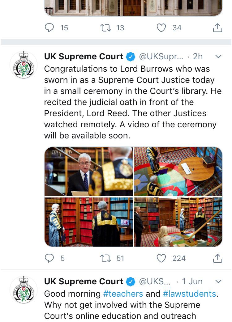 With apologies for cross-posting (ODG), warm congratulations to the extraordinary Andrew Burrows on his swearing in as a Justice of the Supreme Court..he is now the Rt. Hon. Lord Burrows and the press release indicates that he will be sitting as soon as later this month:https://www.supremecourt.uk/news/swearing-in-of-the-right-honourable-professor-burrows-qc-as-justice-of-the-supreme-court.htmlAttached is a screen grab from the Court's twitter feed.Bravo Andy!Lionel